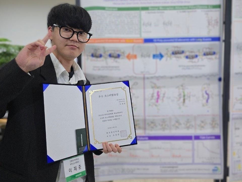 국립강릉원주대학교(총장 박덕영) 화학신소재학과에 재학중인 이재준 학부생 (지도교수 이은지)111~2일 전남대학교에서 개최된 ‘2024 한국결정학회 학술대회에서 우수 포스터발표상을 수상했다.